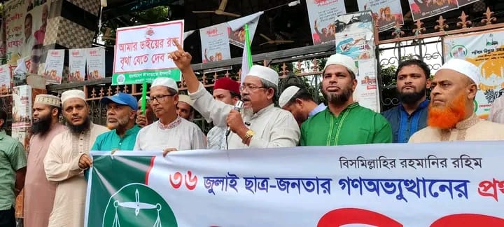 বাংলাদেশ জামায়াতে ইসলামীর কেন্দ্রীয় মজলিশে শুরার সদস্য ও বান্দরবান পার্বত্য জেলা আমীর জনাব এস এম আবদুচ ছালাম আজাদ ৫ই আগষ্ট ২০২৫,৩৬ জুলাই গণঅভ্যুত্থান দিবসের প্রথম বার্ষিকী পালন উপলক্ষে গণমিছিলোত্তর সমাবেশে উপরোক্ত কথা বলেন, তিনি আরো বলেন মানবিক মর্যাদা প্রতিষ্টার মাধ্যমে ৩৬ জুলাই চেতনাকে লালন করতে হবে, জুলাই শহীদ ও ক্ষতিগ্রস্তদের সাথে বেঈমানী করা যাবেনা,রক্তাক্ত ৩৬ জুলাই কে যারা বিতর্কিত করতে চাই তারা জাতির প্রকাশ্য দুষমন। যারা বিপ্লবের তথাকথিত একক ক্রেডিডের দাবীদার তারা নোংরা ও কদাকার রাজনীতির পৃষ্টপোষক। এরা মুলতঃ রাজনৈতিক ডাকাত। এই শ্রেণীর লোকেরা রাজনীতির নামে জনগণের মাথা বিক্রি করে অঢেল সম্পদ লুটপাট করে নিজেদের আখের গোচায়। এই রাজনৈতিক ডাকাতেরা দেশ ও জাতির বোঝা। এই রাজনৈতিক ডাকাতরায় সারা দেশে চাঁদাবাজি, বাস স্যান্ড দখল, চাঁদার জন্য প্রকাশ্যে খুন খারাবী করে চলছে। তারা ৩৬ জুলাই বিপ্লবকে অপমান করে যাচ্ছে। বিপ্লবের চেতনাকে ভিন্নখাতে প্রভাবিত করার চেষ্টা করছে, ৩৬ জুলাই বিপ্লবে চেতনা হলো পুরাতনের জড়তা পরিহার করে নতুনত্বকে স্বাগত জানানো। ৩৬ জুলাই এর চেতনা মানে সকল স্থান থেকে দুর্নিতি, বৈষম্য স্বজন প্রীতিসহ যাবতীয় কদাকারকে কোন দলমতের দোহায় দিয়ে জুলাই বিপ্লবের শহীদদের রক্তের সাথে বেইমানী করা যাবেনা। ক্ষতিগ্রস্থ পরিবারের স্বীকৃতি ও পুনর্বাসন করতে হবে। আহতদের পুর্ন চিকিৎসার ব্যবস্থা নিতে হবে।