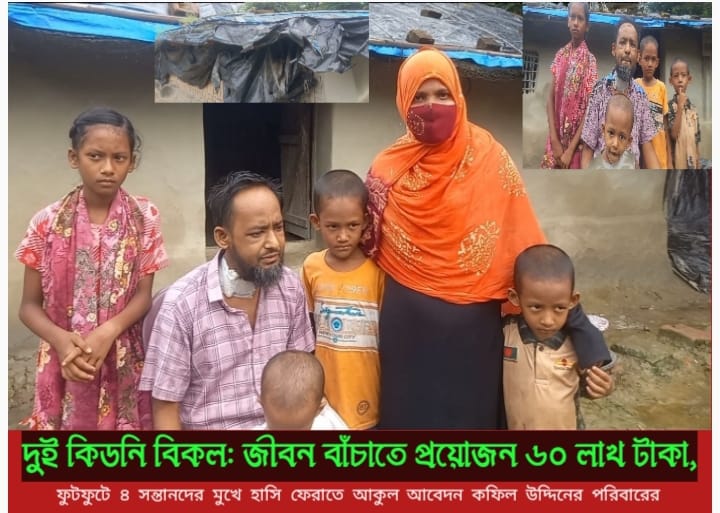 দুই কিডনি বিকল: জীবন বাঁচাতে প্রয়োজন ৬০ লাখ টাকা, ফুটফুটে ৪ সন্তানদের মুখে হাসি ফেরাতে আকুল আবেদন কফিল উদ্দিনের পরিবারের