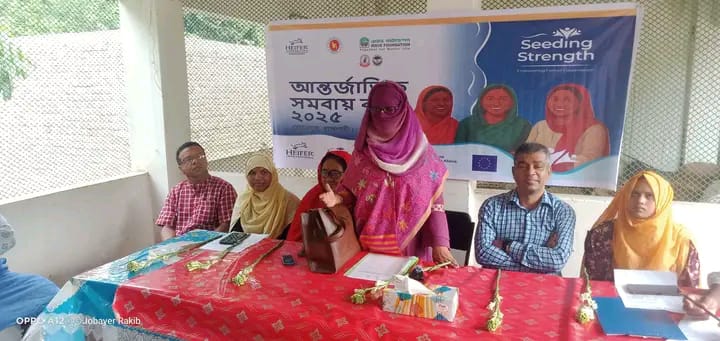 মোহনপুর (রাজশাহী), ১৬ অক্টোবর, ২০২৫: “সমবায় উন্নত বিশ্বের জন্য অন্তর্ভুক্তিমূলক এবং টেকসই উন্নয়ন পরিচালনা” প্রতিপাদ্যকে সামনে রেখে আন্তর্জাতিক সমবায় বর্ষ ২০২৫ উপলক্ষে রাজশাহীর মোহনপুরে যথাযোগ্য মর্যাদায় একটি আলোচনা সভা ও র্যালির আয়োজন করা হয়। হেইফার ইন্টারন্যাশনাল বাংলাদেশ ও ওয়েভ ফাউন্ডেশনের সমর্থনে ঘাসফুল মহিলা সমবায় সমিতি লিমিটেডের প্রাঙ্গণে এই বিশেষ অনুষ্ঠান অনুষ্ঠিত হয়।