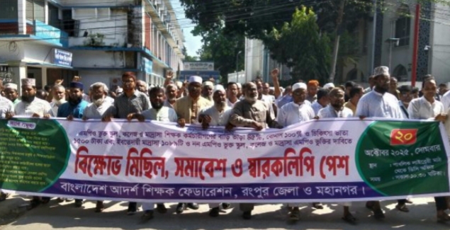 রংপুরে সাত দফা দাবি আদায়ে রংপুরে বাংলাদেশ আদর্শ শিক্ষক ফেডারেশনের বিক্ষোভ মিছিল, সমাবেশ ও স্মারকলিপি প্রদান