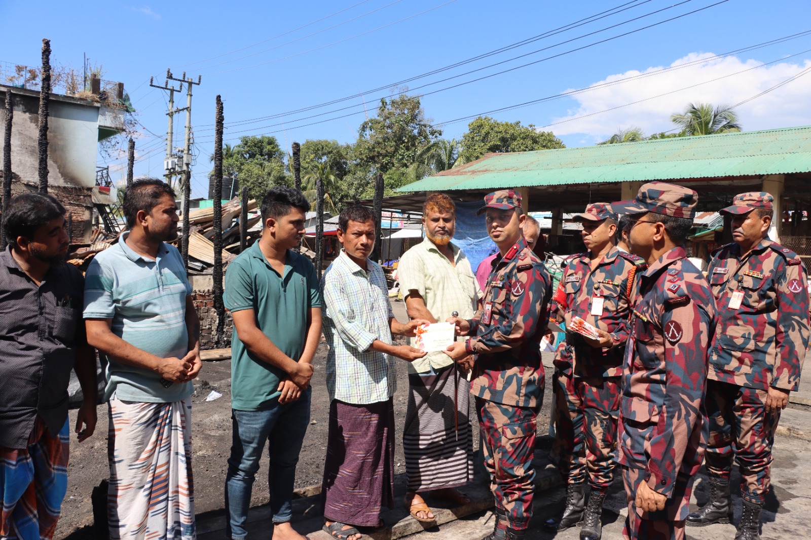 এ সময় তিনি ক্ষতিগ্রস্ত দোকান মালিকদের প্রতি সমবেদনা জ্ঞাপন করেন এবং ভবিষ্যতেও বিজিবি জনগণের পাশে থেকে মানবিক সহায়তা অব্যাহত রাখার আশ্বাস প্রদান করেন।
