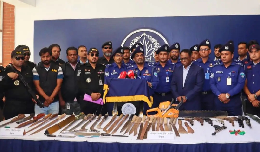জেলা পুলিশ কর্তৃক উদ্ধারকৃত অস্ত্রের বিবরণ: ৮ টি এলজি, ৬ রাউন্ড কার্তুজ, ১৪ টি ছোরা, ৩ টি রামদা,২ টি চাপাতি, ২ টি তলোয়ার, ১ টি কিরিচ ও ১ টি ইলেক্ট্রিক কাটার