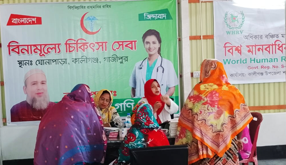 গাজীপুরের কালীগঞ্জ উপজেলার কালীগঞ্জ পৌরসভার ৮ নং ওয়ার্ড ঘোনাপাড়া গ্রামে নাজমুল গনি (লাভলু)র ব্যাবস্হাপনায় প্রায় দেড় শতাদিক রুগীকে ফ্রি চিকিৎসা সেবা প্রদান, ও বিনামূল্যে ঔষধ বিতরণ করা হয়েছে।