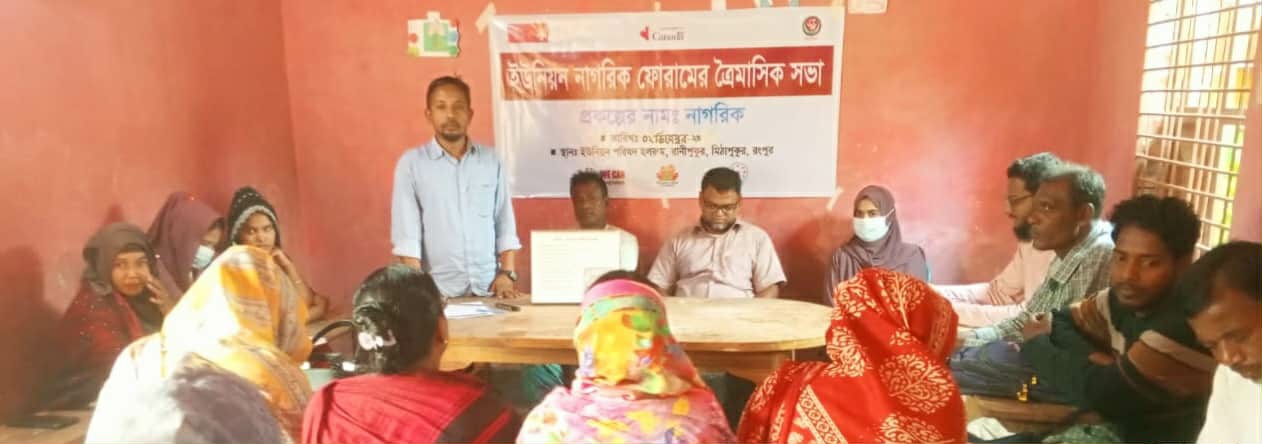 কানাডার দাতা সংস্থার অর্থায়নে ন্যাশনাল অ্যাডভান্সমেন্ট ফর গভার্ন্যান্স অ্যান্ড রাইটস ইনিশিয়েটিভস ইন কমিউনিটিস (নাগরিক) প্রকল্পের আয়োজনে গতকাল মঙ্গলবার রংপুরের মিঠাপুকুর উপজেলার বড় হয়রতপুর ও রানীপুকুর ইউনিয়নের ইউনিয়ন নাগরিক ফোরামের ত্রৈমাসিক সভা অনুষ্ঠিত হয়।