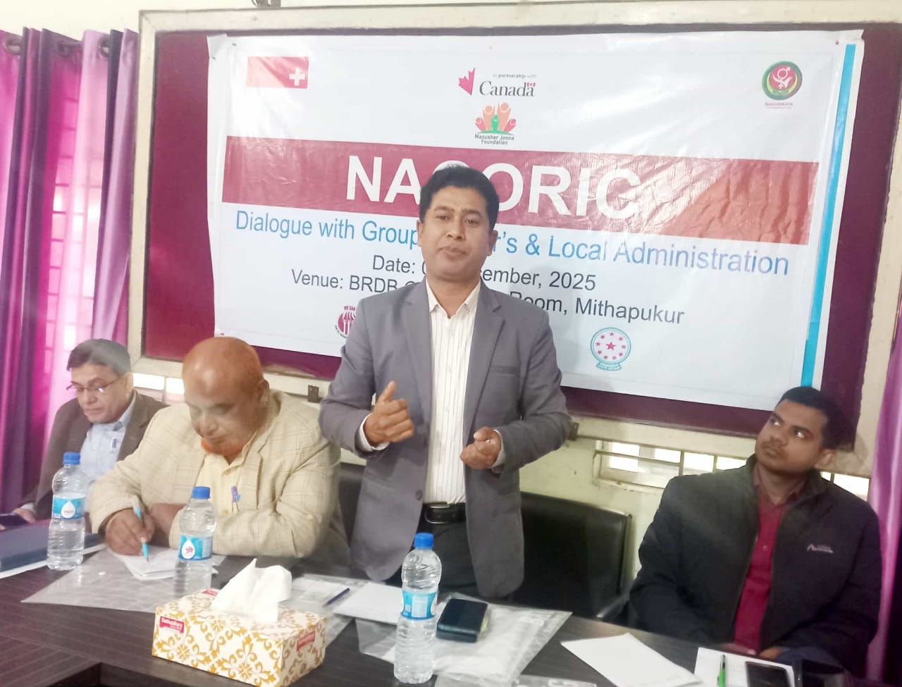 মিঠাপুকুর জি এফএ কনসালটিং গ্রুপ,কানাডা ও সুইজারল্যান্ড সরকারের আর্থিক সহায়তায় এবং জাতীয় বেসরকারি সংস্থা আমরাই পারি বাংলাদেশ ও মানুষের জন্য ফাউন্ডেশনের কারিগরি সহযোগিতায় নাগরিক প্রকল্প দেবী চৌধুরানী পল্লী উন্নয়ন কেন্দ্র মিঠাপুকুর উপজেলায় কার্যক্রম বাস্তবায়নে গতকাল বৃহস্পতিবার রংপুরের মিঠাপুকুর উপজেলা পল্লী উন্নয়ন বিআরডিবি,র সম্মেলন কক্ষে সামাজিক নিরাপত্তা কর্মসূচিতে প্রান্তিক জনগোষ্ঠীর অধিকার বিষয়ক আমাদের করণীয় শীর্ষক সংলাপ অনুষ্ঠিত হয়।