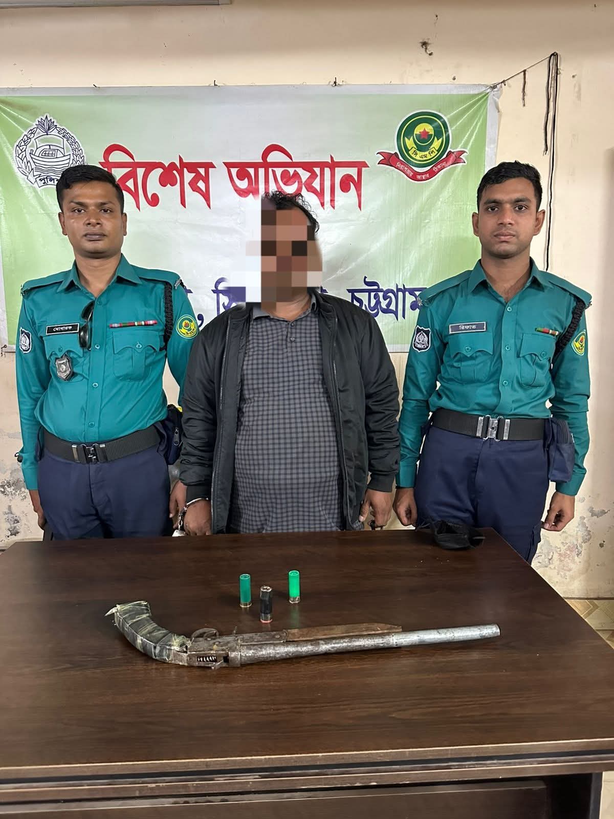 কর্ণফুলী থানার অফিসার ইনচার্জ জাহেদুল ইসলাম এর নেতৃত্বে এসআই(নিঃ) মাহিন সরওয়ার সঙ্গীয় ফোর্স সহ যৌথ বাহিনীর সহায়তায় কর্ণফুলী খানা এলাকায় অভিযান পরিচালনা করে আসামী রাশেদ নুর প্রঃ রাশু (৩৮), পিতা- রাজ্জাক নুর প্রঃ রজ্জক নুর, মাতা-মুন্নি বেগম, সাং-উত্তর বন্দর, কোট্টাপাড়া, ২নং ওয়ার্ড, রাজ্জাক নুরের বাড়ী, ১নং বৈরাগ ইউপি, থানা-কর্ণফুলী, জেলা-চট্টগ্রামকে আটক পূর্বক তার হেফাজত হতে ১টি দেশী তৈরী এলজি ও ৩ রাউন্ড কার্তুজ উদ্ধার করেন। গ্রেফতারকৃত আসামীকে কর্ণফুলী থানার মামলা নং-০৫, তারিখ-০৫/১২/২০২৫