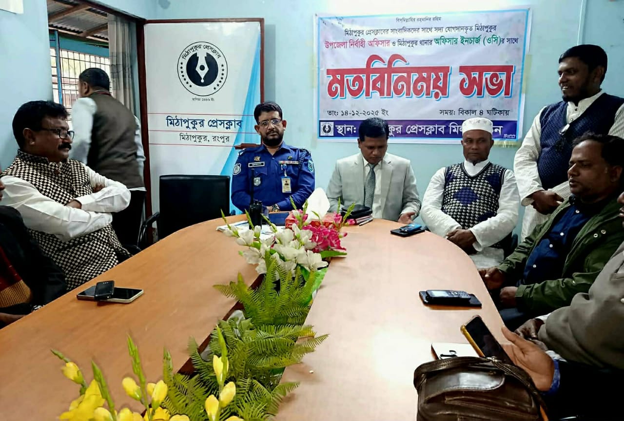 গতকাল রবিবার বিকালে মিঠাপুকুর প্রেসক্লাব হলরুমে এই মতবিনিময় সভা অনুষ্ঠিত হয়। এতে সভাপতিত্ব করেন, মিঠাপুকুর প্রেসক্লাবের সভাপতিশেখসাদী সরকার।
