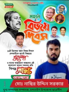 একটি শহীদ মিনারে বিজয় দিবস উপলক্ষে শ্রদ্ধাঞ্জলি দেওয়া হয়েছে।
