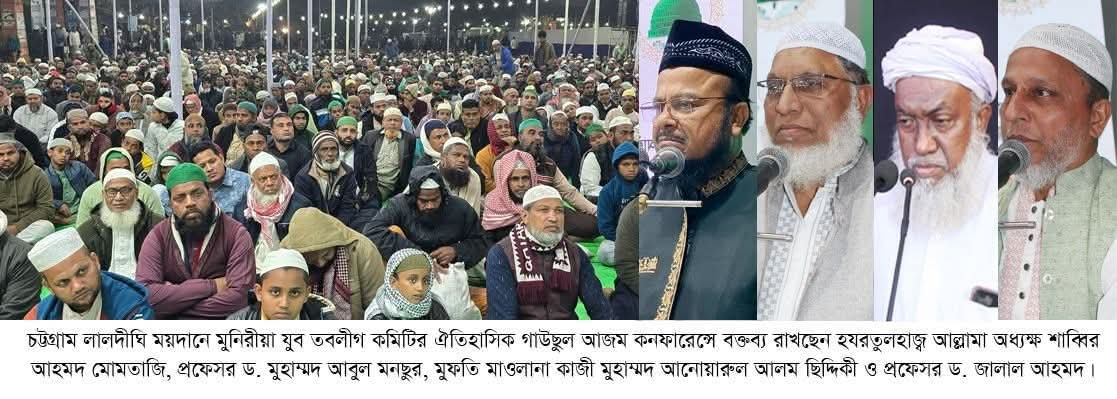 সোমবার (২৯ ডিসেম্বর) চট্টগ্রাম নগরীর লালদীঘি ময়দানে পবিত্র জশ্নে জুলুছে ঈদে মিলাদুন্নবী (দ.) উদযাপন ও খলিলুল্লাহ্, আওলাদে মোস্তফা, খলিফায়ে রাসূল (দ.) হযরত শায়খ ছৈয়্যদ গাউছুল আজম রাদ্বিয়াল্লাহু তা’আলা আনহুর স্মরণে অনুষ্ঠিত ঐতিহাসিক গাউছুল আজম কনফারেন্সে কাগতিয়া আলীয়া গাউছুল আজম দরবার শরীফের মাননীয় মোর্শেদ, আওলাদে রাসূল (দ.) হযরতুলহাজ্ব আল্লামা অধ্যক্ষ শায়খ ছৈয়্যদ মোর্শেদে আজম মাদ্দাজিল্লুহুল আলী প্রধান মেহমানের বক্তব্যে এসব কথা বলেন।