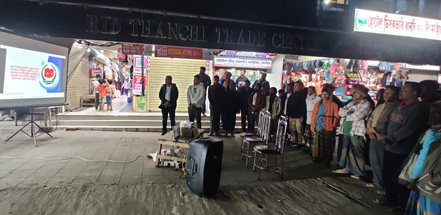 তার অংশ হিসেবে আজ ৯ই ডিসেম্বর ২০২৫ সন্ধ্যার পর থেকে থানচি বাজার রিড ট্রেড সেন্টারের সামনে, প্রজেক্টেরের মাধ্যমে বিভিন্ন জনসাধারণের অংশগ্রহণে অনুষ্ঠিত প্রচারণায় উপস্থিত ছিলেন উপজেলা নির্বাহী কর্মকর্তা মোহাম্মদ আব্দুল্লাহ আল ফয়সাল, অতিরিক্ত জেলা প্রশাসক(সার্বিক)মোঃ আবু তালেব, এবং এক্সিকিউটিভ ম্যাজিস্ট্রেট জালাল মোঃ আশফাক।