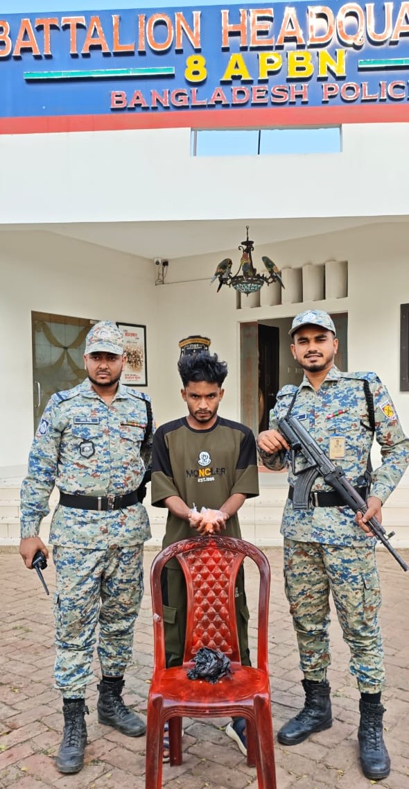 ৮ এপিবিএন সূত্র জানায়, এসআই (নি:) মোঃ নুর নবীর নেতৃত্বে সঙ্গীয় অফিসার ও ফোর্স নিয়মিত চেকপোস্ট কার্যক্রম পরিচালনার সময় সন্দেহজনক চলাফেরার কারণে এক রোহিঙ্গা যুবককে আটক করা হয়। পরে আশপাশ থেকে আগত সাক্ষীদের উপস্থিতিতে তাকে তল্লাশি করা হলে তার হাতে থাকা একটি শপিং ব্যাগের ভেতরে কালো রঙের পলিথিন থেকে ১৮টি লকযুক্ত এয়ারটাইট সাদা পলি প্যাকেট উদ্ধার করা হয়। এসব প্যাকেটের ভেতর থেকে মোট ৯০০ পিস অ্যামফিটামিন জাতীয় ইয়াবা সদৃশ ট্যাবলেট পাওয়া যায়।