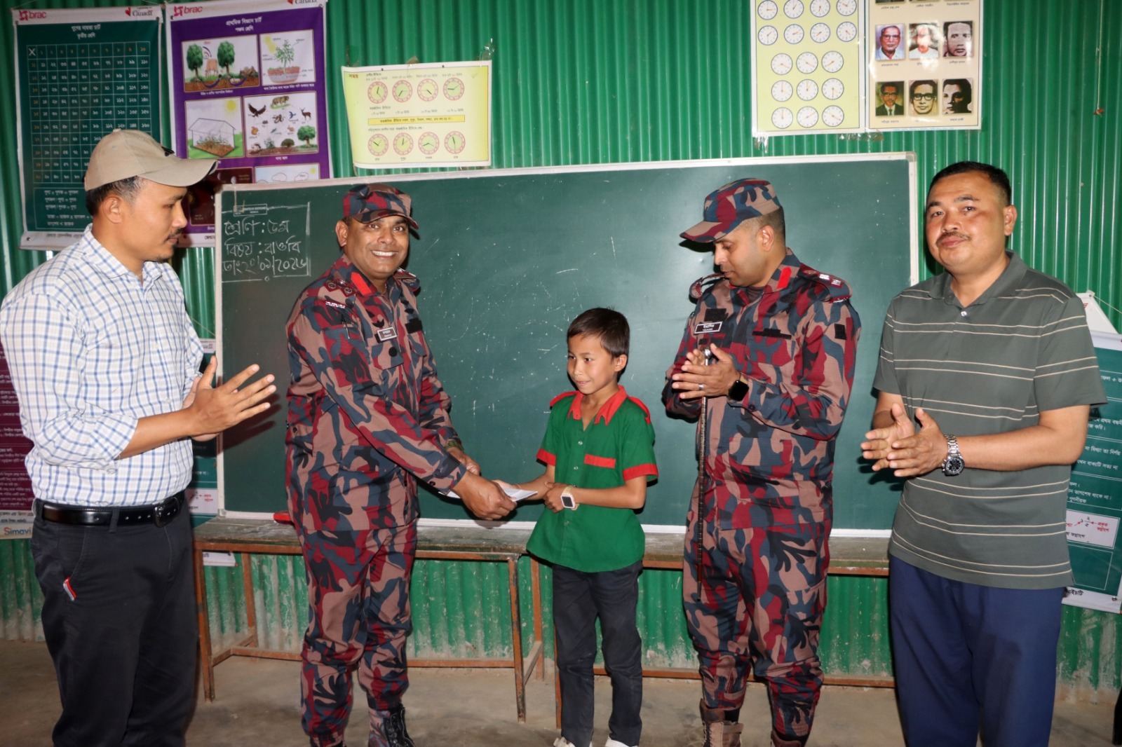 ভোটকেন্দ্র পরিদর্শনকালে সেক্টর কমান্ডার দুর্গম ও পাহাড়ি অঞ্চলে অবস্থিত উক্ত বিদ্যালয়ের দরিদ্র ও অসহায় শিক্ষার্থীদের মাঝে শিক্ষা সহায়ক সামগ্রী বিতরণ করেন।