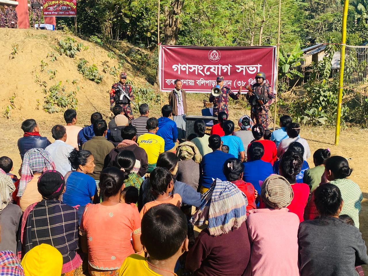 উক্ত গণসংযোগ সভায় বলিপাড়া জোনের ভারপ্রাপ্ত কোয়ার্টার মাস্টার সহকারী পরিচালক মোঃ জাকির হোসেন স্থানীয় জনগণের বিভিন্ন সমস্যা, চাহিদা ও মতামত মনোযোগসহকারে শুনেন এবং ত্রয়োদশ জাতীয় সংসদ নির্বাচনকে কেন্দ্র করে দুষ্কৃতিকারী কর্তৃক তৎপরতা, অবৈধ সীমান্ত পারাপার, অস্ত্র ও গোলাবারুদ চোরাচালান, মাদকদ্রব্য পাচার কিংবা অন্য যে কোনো অপরাধমূলক কার্যক্রম যেন সংঘটিত হতে না পারে সে বিষয়ে সবাইকে সতর্ক থাকার আহবান জানান।
