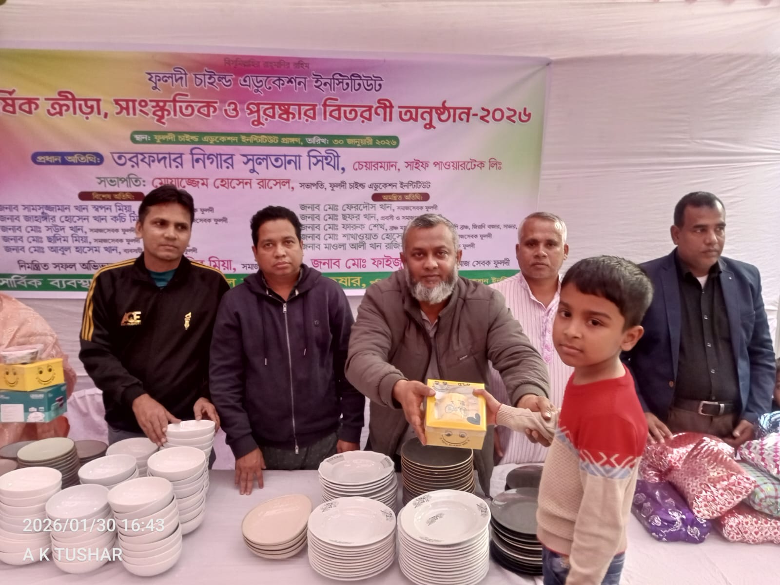 ফুলদী চাইল্ড এডুকেশন ইনস্টিটিউট এর সভাপতি মোয়াজ্জেম হোসেন রাসেল এর সভাপতিত্বে অনুষ্ঠানে প্রধান অতিথি হিসেবে অলংকৃত করেছেন মিসেস নিগার সুলতানা সিথি । বিশেষ অতিথি হিসেবে উপস্থিত ছিলেন এলাকার সুনামধন্য ব্যবসায়ী ও সমাজসেবকবৃন্দ- শামসুজ্জামান খান স্বপন মিয়া, জাহাঙ্গীর হোসেন খান কচি মিয়া, মোঃ সউদ খান, মোঃ ছাদিম মিয়া, জনাব আবুল হাসেম খান।