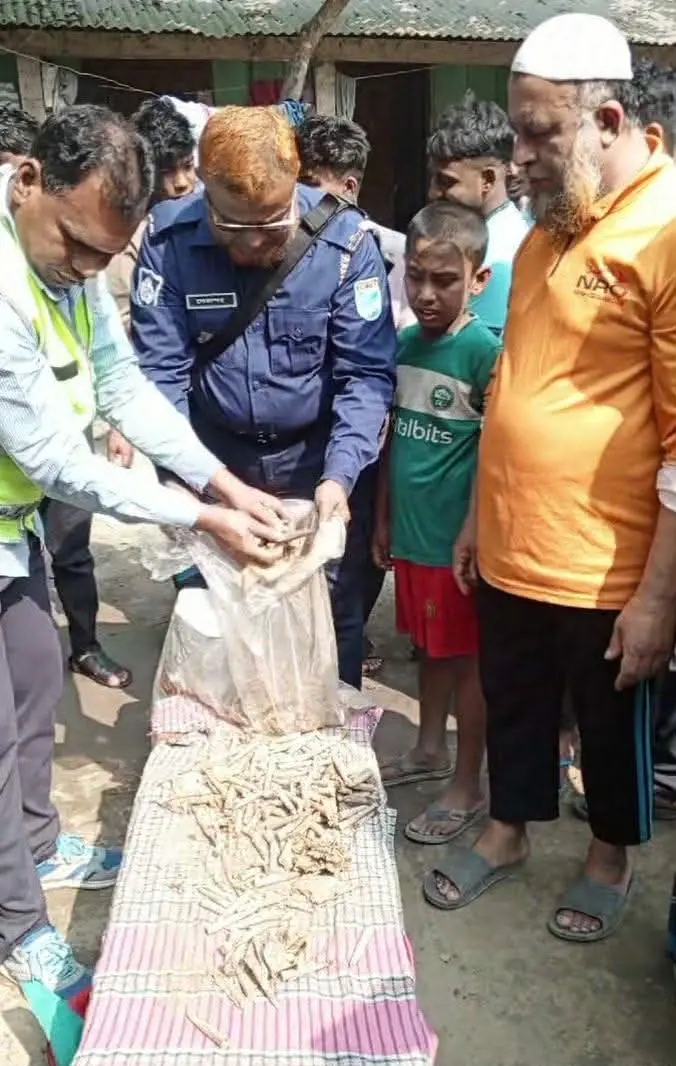 নরসিংদীর শিবপুর উপজেলায় পুটিয়া ইউনিয়ন এর ৯ নং ওয়ার্ড সাবেক মেম্বার আলহাজ্ব গিয়াস উদ্দিন মোল্লার বাড়ির সামনের উঠান থেকে অদ্য ২৪ জানুয়ারি ২০২৬ ইং শনিবার সকাল প্রায় ১১ ঘটিকা সময় মাটিতে পুতে রাখা পরিত্যক্ত অবস্থায় বিপুল পরিমাণ গুলি মাটি খুঁড়ে উদ্ধার করেছেন শিবপুর মডেল থানার পুলিশ।