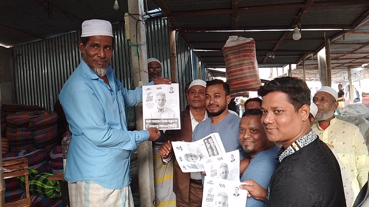 সাদিপুর ইউনিয়নের নয়াপুর বাজারে মান্নানের পক্ষে বিএনপির গণসংযোগ ও লিফলেট বিতরণ