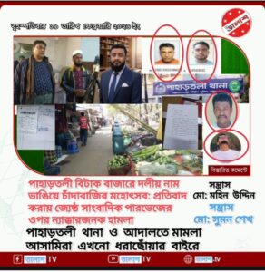 পাহাড়তলী ও বিটাক বাজার এলাকাকে সন্ত্রাসমুক্ত করতে এবং আইনের শাসন প্রতিষ্ঠা করতে পুলিশকে এখনই কঠোর হতে হবে,সাংবাদিক পারভেজের ওপর হামলাকারীদের দৃষ্টান্তমূলক শাস্তি নিশ্চিত করা না গেলে,এই জনপদ অপরাধীদের স্বর্গরাজ্যে পরিণত হবে—যা কোনোভাবেই কাম্য নয়।