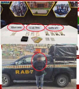 এ সময় তার হেফাজত থেকে ৭৪ হাজার ৫০০ জাল ভারতীয় রুপি, ১ হাজার ৭০০ জাল ইউএস ডলার এবং ১০০ জাল ইউএই দিরহাম উদ্ধার করা হয়,র্যাব জানায়,গ্রেফতারকৃত ব্যক্তি দীর্ঘ দিন ধরে বিভিন্ন দেশের জাল মুদ্রা সংগ্রহ করে তা প্রতারণার মাধ্যমে বাজারে বিক্রি করে আসছিল।