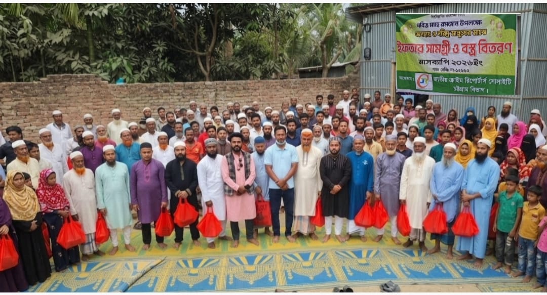 পবিত্র ঈদুল ফিতর উপলক্ষে চট্টগ্রামের জঙ্গল সেলিমপুরে অর্ধশতাধিক (৫০টিরও বেশি) অসহায় ও হতদরিদ্র পরিবারের মাঝে ঈদ বস্ত্র বিতরণ করেছে জাতীয় ক্রাইম রিপোর্টার সোসাইটি,সমাজের সুবিধাবঞ্চিত মানুষের ঈদের আনন্দকে আরও বাড়িয়ে দিতে শাড়ি,লুঙ্গিসহ বিভিন্ন ঈদ উপহার তুলে দেয় সংগঠনটি।