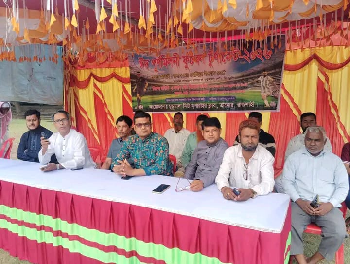 রাজশাহীর মুনডমালা পৌরসভায় পবিত্র ঈদ-উল-ফিতর উপলক্ষে আয়োজিত “ঈদ পুনর্মিলনী ফুটবল টুর্নামেন্ট ২০২৬”-এর শুভ উদ্বোধন করা হয়েছে। অনুষ্ঠানে প্রধান অতিথি হিসেবে উপস্থিত থেকে টুর্নামেন্টের উদ্বোধন করেন বিশিষ্ট সমাজসেবক ফিরোজ সরকার।