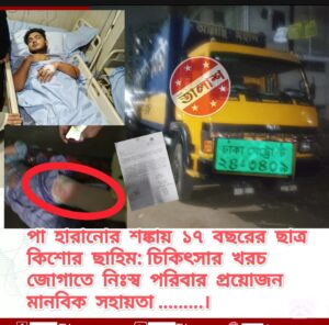 পা হারানোর শঙ্কায় ১৭ বছরের ছাত্র কিশোর ছাহিম: চিকিৎসার খরচ জোগাতে নিঃস্ব পরিবার প্রয়োজন মানবিক সহায়তা