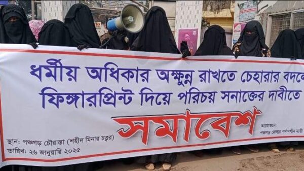 সুব্রত বাবু সিক্রেট রিপোর্টার পঞ্চগড় শেরে-ই-বাংলা পার্ক সংলগ্ন মহাসড়কের পর্দাশীন নারীদের তিন দফা দাবিতে ঘন্টা ব্যাপী মানববন্ধন করেছেন, বাংলাদেশের সাংবিধানিক রাষ্ট্রধর্ম ইসলাম। এদেশের শতকরা ৯৮% মানুষ হচ্ছে মুসলমান। পঞ্চগড় –