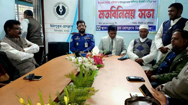 নবাগত ইউএনও, ওসির সঙ্গে মিঠাপুকুর প্রেসক্লাবের সাংবাদিকদের মতবিনিময় সভা। অনলাইন তালাশ ক্রাইম রিপোর্টার রাসেল আহমেদ। মিঠাপুকুর রংপুরের মিঠাপুকুরে নবাগত উপজেলা নির্বাহী অফিসার মোঃ পারভেজ এবং মিঠাপুকুর থানার নবাগত অফিসার ইনচার্জ