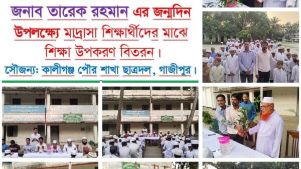 বিএনপির ভারপ্রাপ্ত চেয়ারম্যান তারেক রহমানের ৬১তম জন্মদিনে কালীগঞ্জ পৌর শাখা ছাত্রদলের নানা কর্মসূচি মোঃ মুক্তাদির হোসেন, স্টাফ রিপোর্টার। বিএনপির ভারপ্রাপ্ত চেয়ারম্যান জনাব তারেক রহমানের জন্মদিন উপলক্ষে কালীগঞ্জ পৌরসভার বিভিন্ন মাদ্রাসা