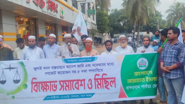 মোঃ শহিদুল ইসলাম শহীদ বান্দরবানঃবান্দরবানে জেলা জামায়াতের উদ্যোগে বিক্ষোভ সমাবেশে জুলাই জাতীয় সনদকে আইনি ভিত্তি ও নভেম্বর-২৫ইং এর মধ্যে গণভোট দিয়ে একটি সুষ্ঠু ও সুন্দর নির্বাচনের আয়োজন করতে হবে বলেন