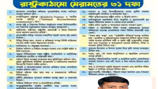 ডেস্ক রিপোর্ট দেশবাসী ইতোমধ্যেই অবগত হয়েছেন যে, জুলাই জাতীয় সনদের ভিত্তিতে আগামী ফেব্রুয়ারিতে অবাধ, সুষ্ঠু ও গ্রহণযোগ্য নির্বাচন অনুষ্ঠানের লক্ষ্যে ৫-দফা দাবির ভিত্তিতে বাংলাদেশ জামায়াতে ইসলামীর পক্ষ থেকে গত ১৫