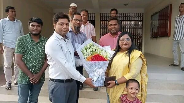 মোঃ নাসিরউদ্দিন রাজশাহী জেলা প্রতিনিধি রাজশাহীর তানোর উপজেলার নবাগত উপজেলা নির্বাহী অফিসার (ইউএনও) জনাবা নাঈমা খাতুনকে ফুলেল শুভেচ্ছা ও অভিনন্দন জানিয়ে স্বাগত জানান উপজেলা সমাজসেবা অফিসার হোসেন আলী ও উপজেলা